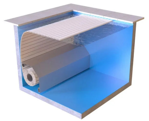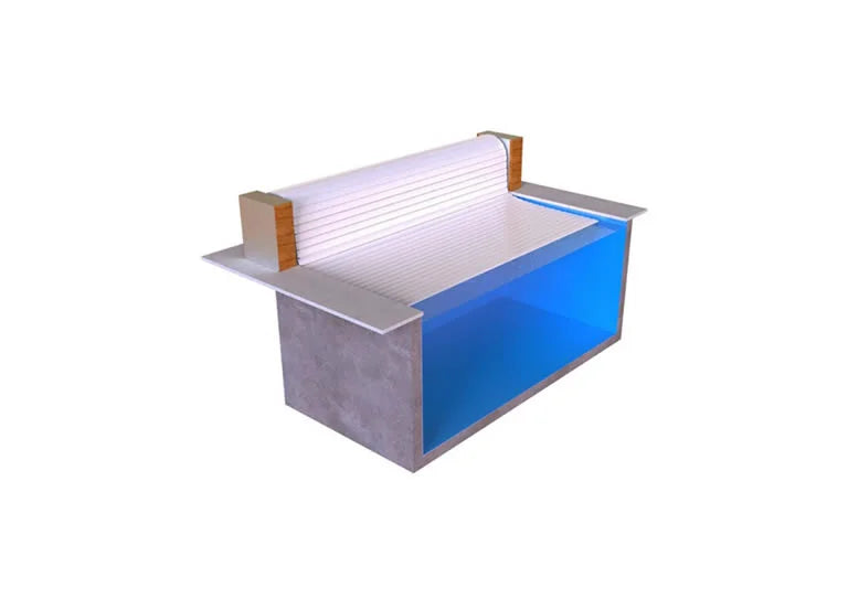 With a newly developed solution, you can now mount the roller hidden inside the pool. In such a mounting, the roller is attached just below the water surface and the slats are fed out from the top. This is an excellent way to hide the roller and create a more beautiful environment around the pool.