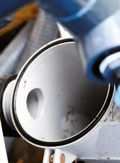 Unscrew one of the connections on the pressure side after the pump (for example, where the electrolysis is connected at the salt chlorinator) and make sure all valves are open (i.e., pointing along the pipe). Close the valve leading to the sand filter. Turn the vacuum cleaner hose so that it blows air into the pipe instead. When you start blowing air in, all the water in the pipe will be pushed into the inlet and out into the pool.