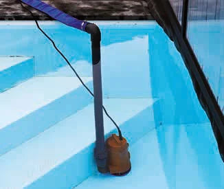 Lower the water level using a submersible pump until the water level is below the inlet. If you have a "jetswim," the level should be lowered below it.