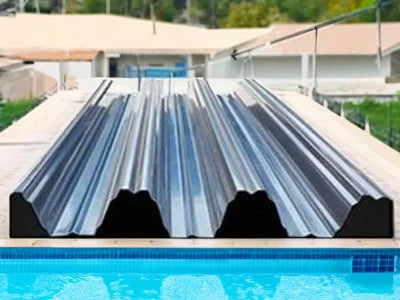 The covers are coated with AluZinc coating on both sides. Chlorine gases are corrosive, but this coating protects the plates and thus prevents the steel from rusting.
