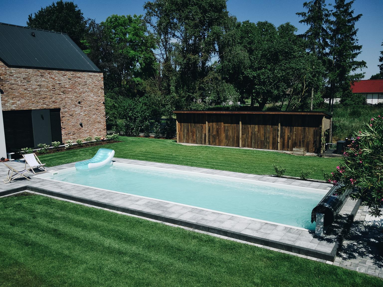 One of the larger models 11.25mx3.75mx1.50. Due to its length, the pool is perfect for professional swimming as well as competitions. The model with double stairs on the pool's longer wall provides comfortable use. With an exotic wooden deck all around, the pool will look beautiful in the garden.