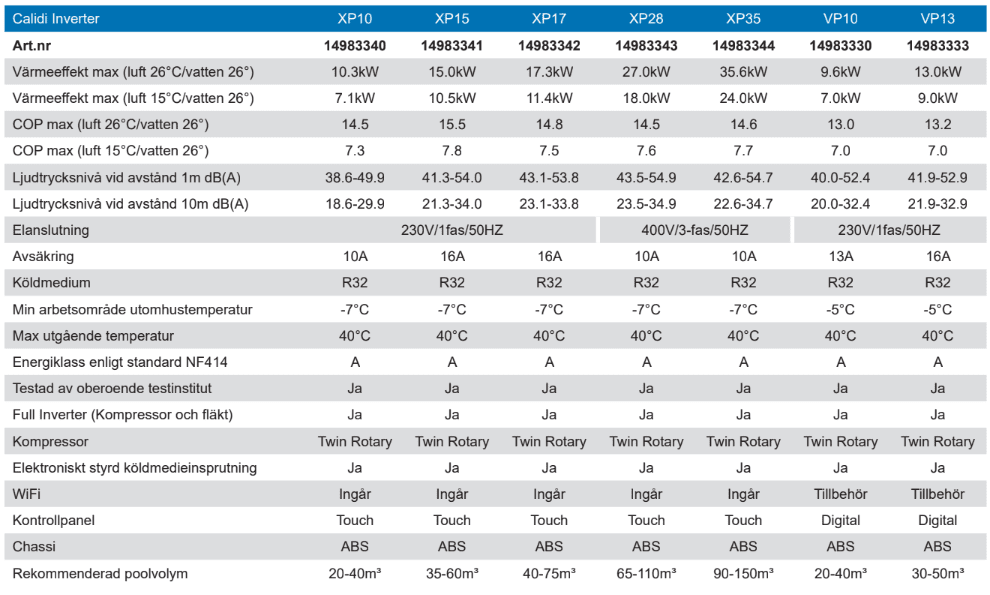 Pahlén pool heat pump Calidi XP & Calidi VP The