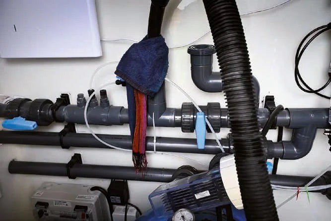 To close the pump cabinet for the winter, the above winter shutdown procedure can be used. For pump rooms located below ground level, the ball valve (which is located just before the pool inlet) must be closed so that no water can enter. If you have a Jetswim, you also need to close the ball valves for it and drain the pipes and pump of water.