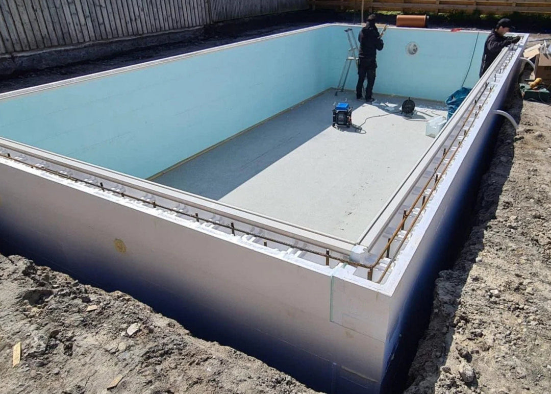 The inside of the pool is lined with a liner fabric available as a snap-in liner or a welded-in-place liner. Choose the liner color as desired, but see our inspiration images as the water color changes with different liner colors. With a white liner, the pool water becomes light blue; with a light gray liner, the pool water becomes blue/green, and so on.