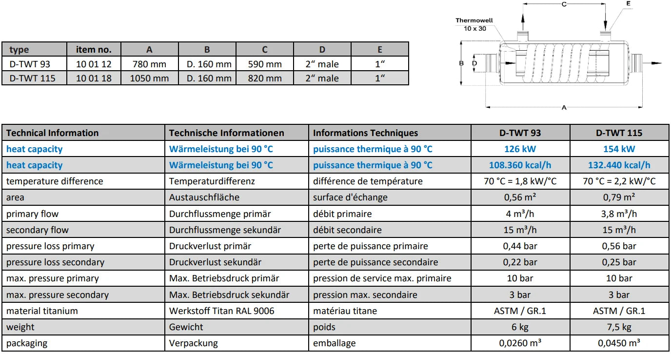 • Smooth tube heat exchanger with spiral, counterflow controlled